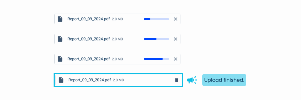 For example, when a user uploads a file or image, they should receive clear and unambiguous feedback on the action, i.e., they should have clear information on the progress of their upload, the occurrence of any errors, or its success.