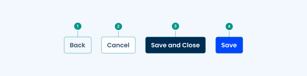| 3 | Primary Grey Button | Save and Close, secondary button [if applicable]. |