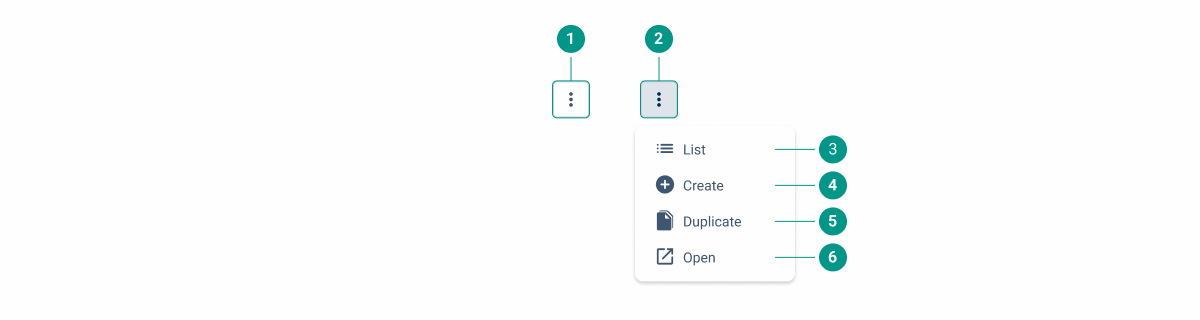For additional and less important actions such as “List” and “Duplicate”, the Overflow Menu prevents the design from becoming too “crowded”;
