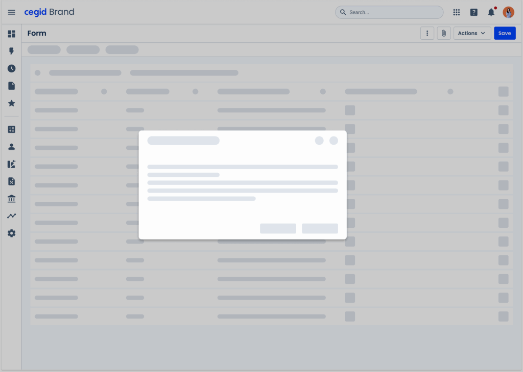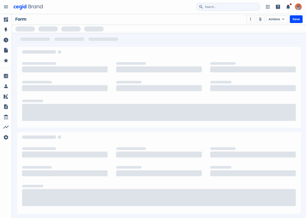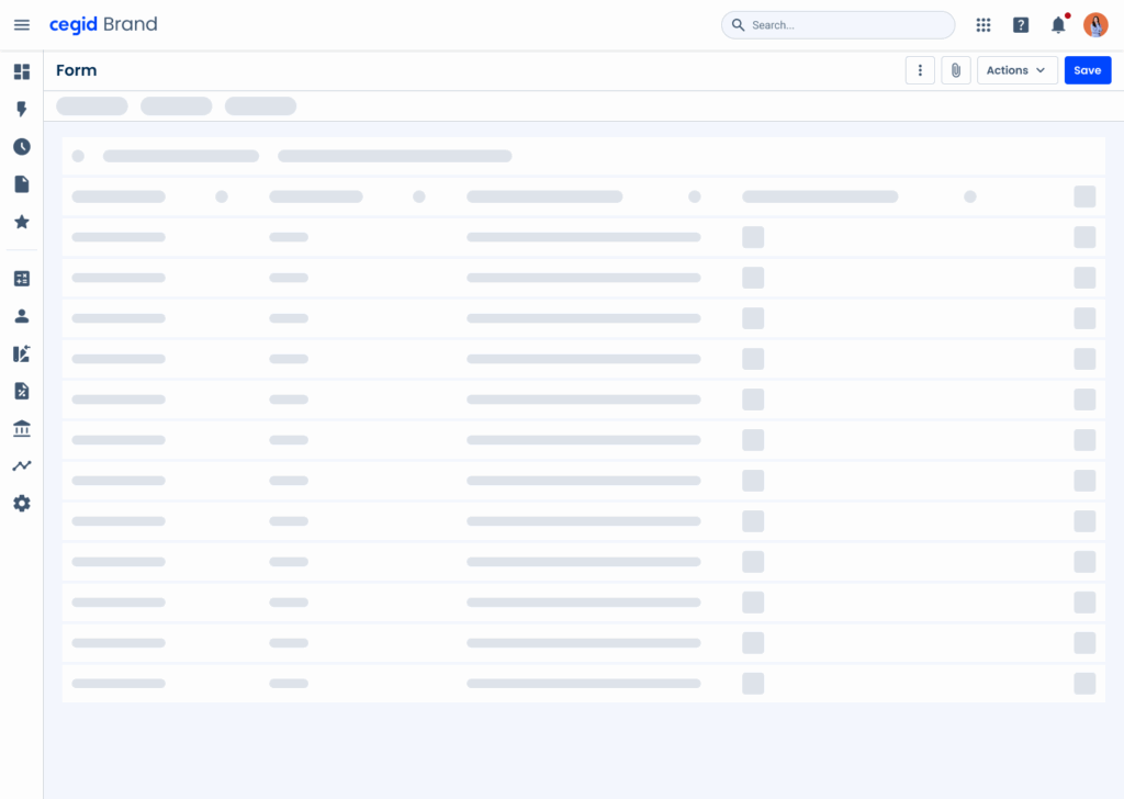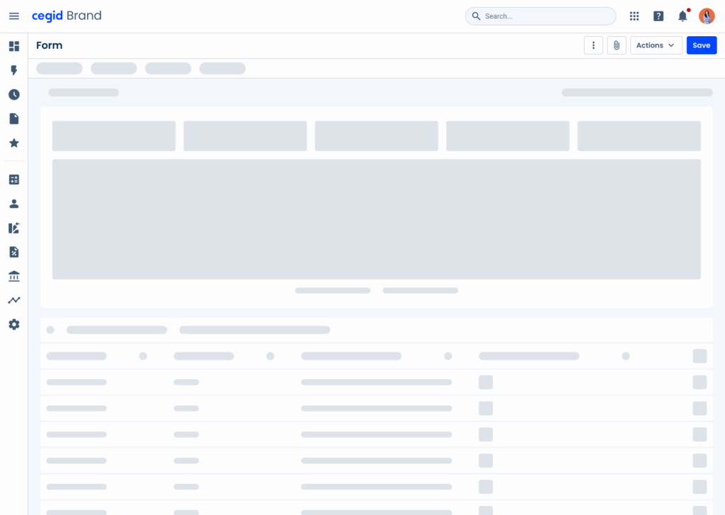 Skeletons are ideal for interfaces that have several repeating elements, such as Data Grids and Dashboards. Due to their frequent use in Cegid products, we have designed some templates that can be used in such cases, all available in Figma.