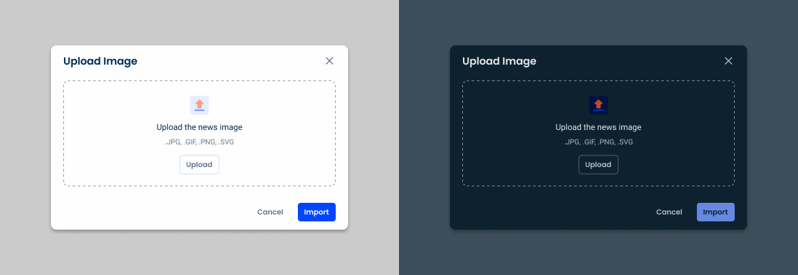 This approach is particularly effective for maintaining a clean and organized layout, as it temporarily makes it possible to view the Uploader without cluttering the main interface. The modal variation enhances user experience by balancing accessibility with minimal disruption.
