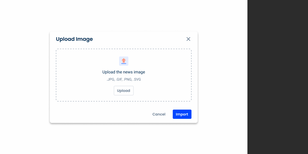 | 2 | Description | Upload the news image; .JPG, .GIF, .PNG, .SVG |