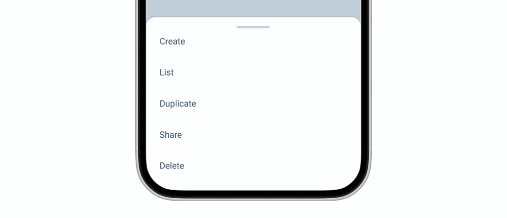Bottom Sheet Modals are placed at the bottom of the device screen. As such, they’re perfect for complementing the primary task while keeping the center of the interface visible. They are also ideal for presenting multiple options through a Menu.