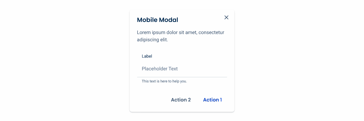 Regular Modals are placed in the center of the device screen. They can resemble Dialogs and, similarly, should be used in scenarios where they are intended to be quickly dismissed (such as when asking users for a single piece of information, such as their email) and/or when wanting to grab the user’s immediate attention.