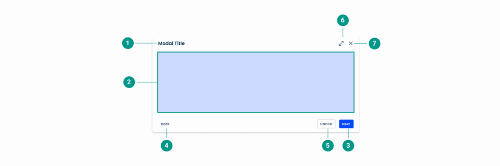 | 2 | Body | Modal body (e.g. form, file uploader section, etc.) |